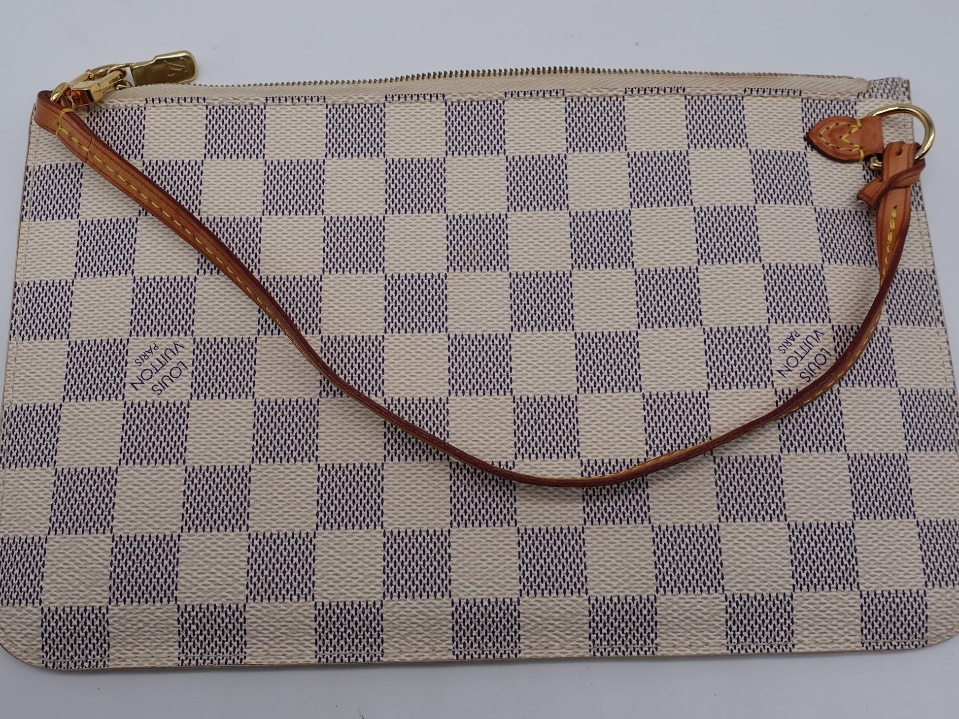 - Design: The Louis Vuitton Damier Azur Neverfull MM GM Wrislet features a classic Damier Azur pattern. šØ
